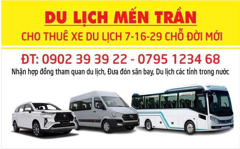 Xe Du Lịch Mến Trần – Chuyên: Cho thuê xe du lịch hợp đồng xe 4-7-16 chỗ – 29 chỗ tham quan du lịch, cưới hỏi đưa đón sân bay, phục vụ công tác…..